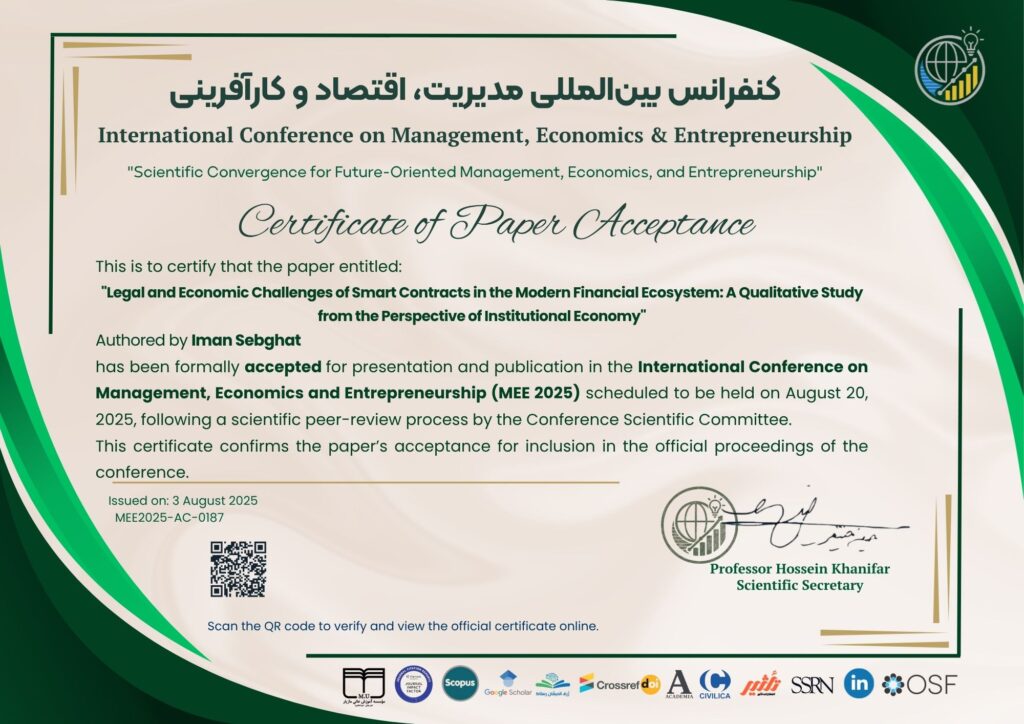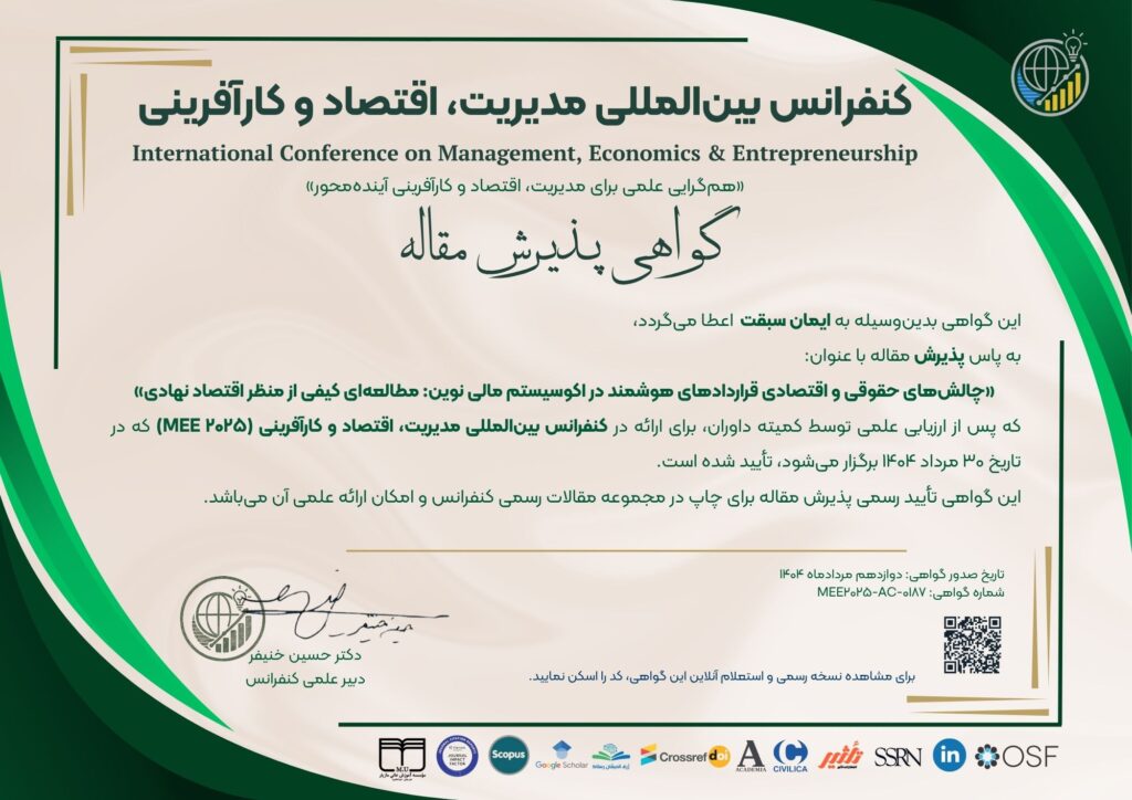 گواهی پذیرش مقاله آقای ایمان سبقت