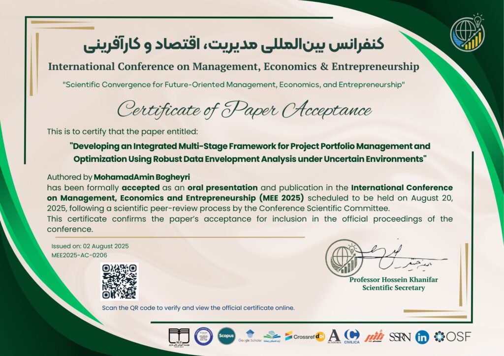 کنفرانس بین المللی مدیریت، اقتصاد و کارآفرینی فرصتی بینظیر برای اساتید، پژوهشگران، دانشجویان، مدیران، کارآفرینان و فعالان حوزههای مرتبط است تا جدیدترین یافتههای علمی، تجربیات حرفهای و ایدههای نوآورانه خود را در بستری بین المللی ارائه کرده و با دیگر متخصصان این حوزهها تعامل مؤثر برقرار کنند.